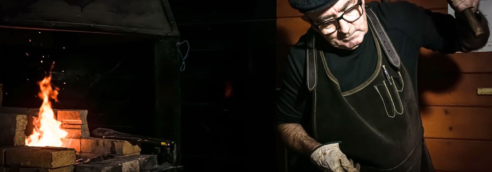 C’est lui qui façonne toutes les lames de ses couteaux. Il le fait à la forge au charbon. Les manches sont en bois massifs issus principalement d’essences locales. La mise en forme et l’assemblage sont faits sur place.